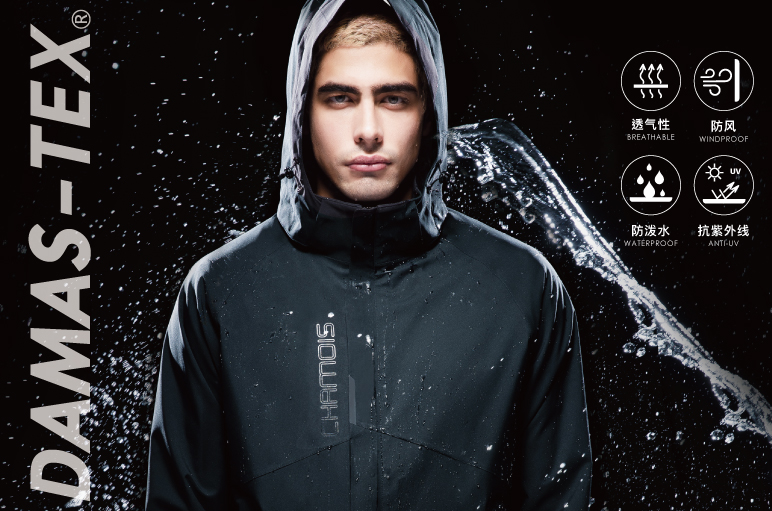 身体运动后的汗水及热气,经由内层布料,透过中层达美斯特膜内的聚合体分子迅速排出到外层布料,使身体保持舒适干爽。同时能抵挡寒风及防水。